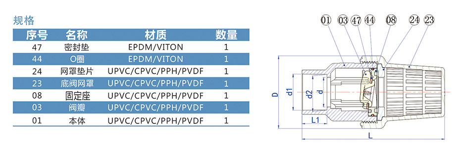1) 材質(zhì):UPVC,CPVC,PPH,PVDF