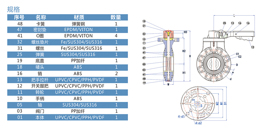1) 材質:UPVC,CPVC,PPH,PVDF