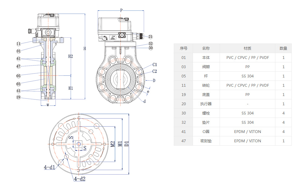 1) 材質(zhì): UPVC, CPVC, PPH, PVDF