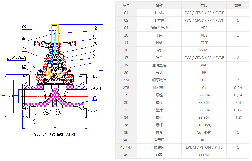 雙片法蘭式隔膜閥 - ANSI