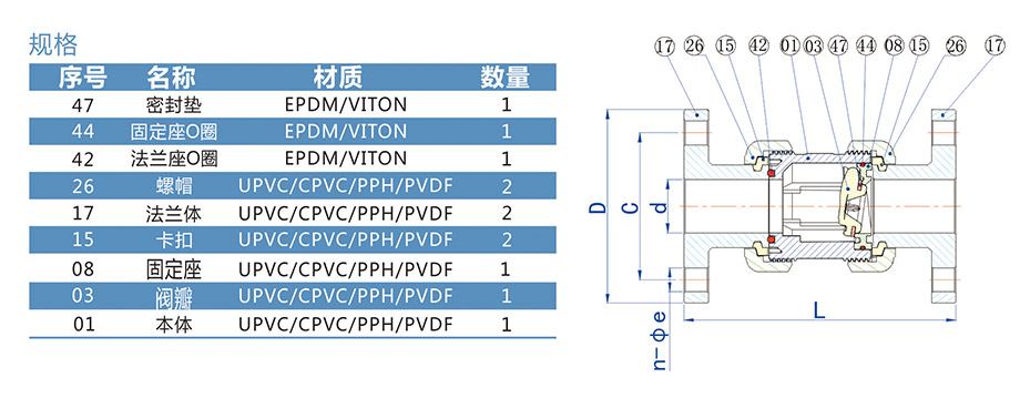 1) 材質:UPVC,CPVC,PPH,PVDF